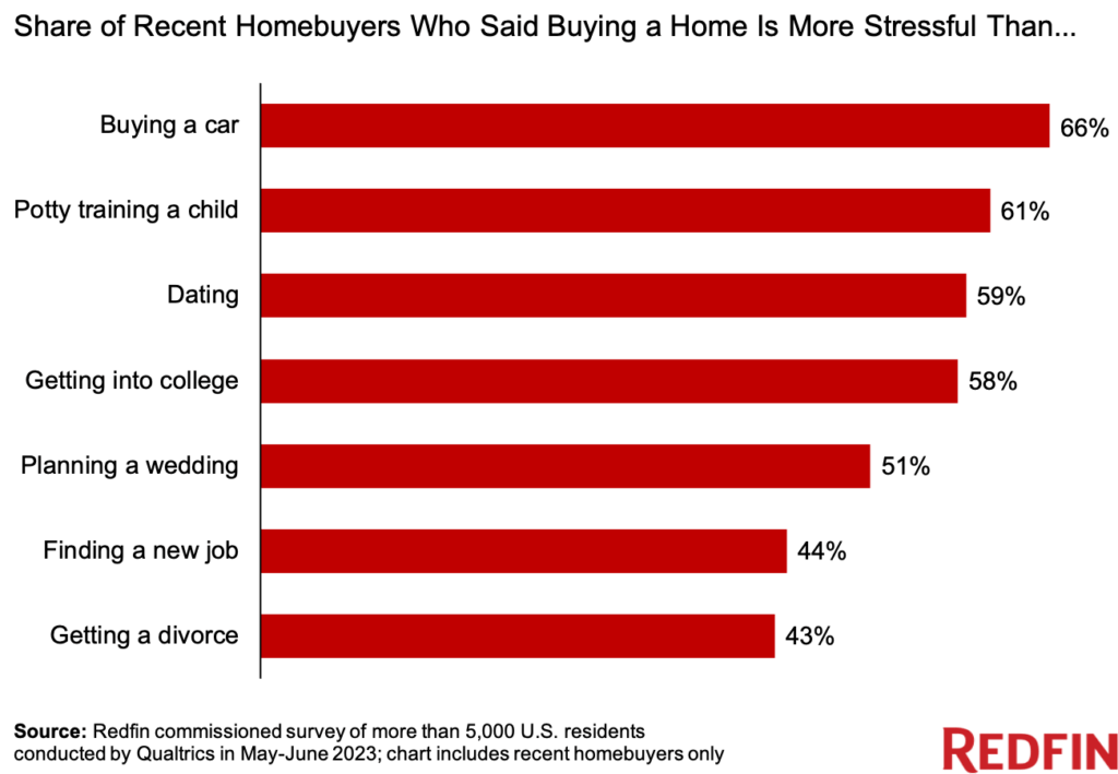 Buying a home or dating – which one’s more stressful? The answer might surprise you. According to a recent survey commissioned by Redfin, nearly 59% of recent U.S. homebuyers believe that purchasing a house is more anxiety-inducing than navigating the world of dating. Let’s delve into the findings of this intriguing survey and understand the factors that contribute to this perception.