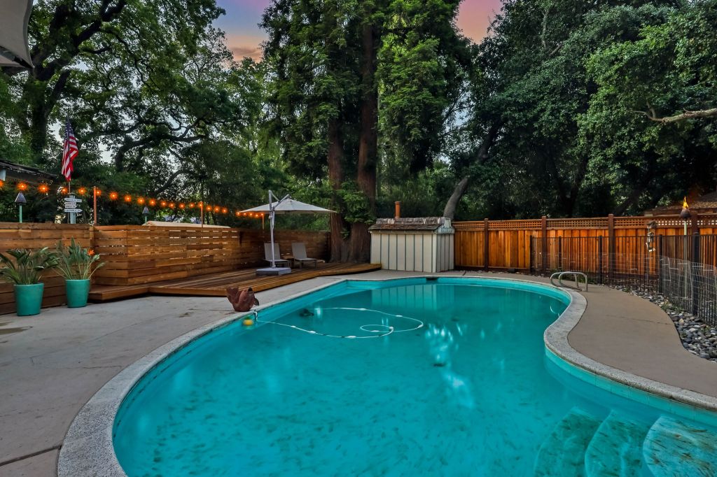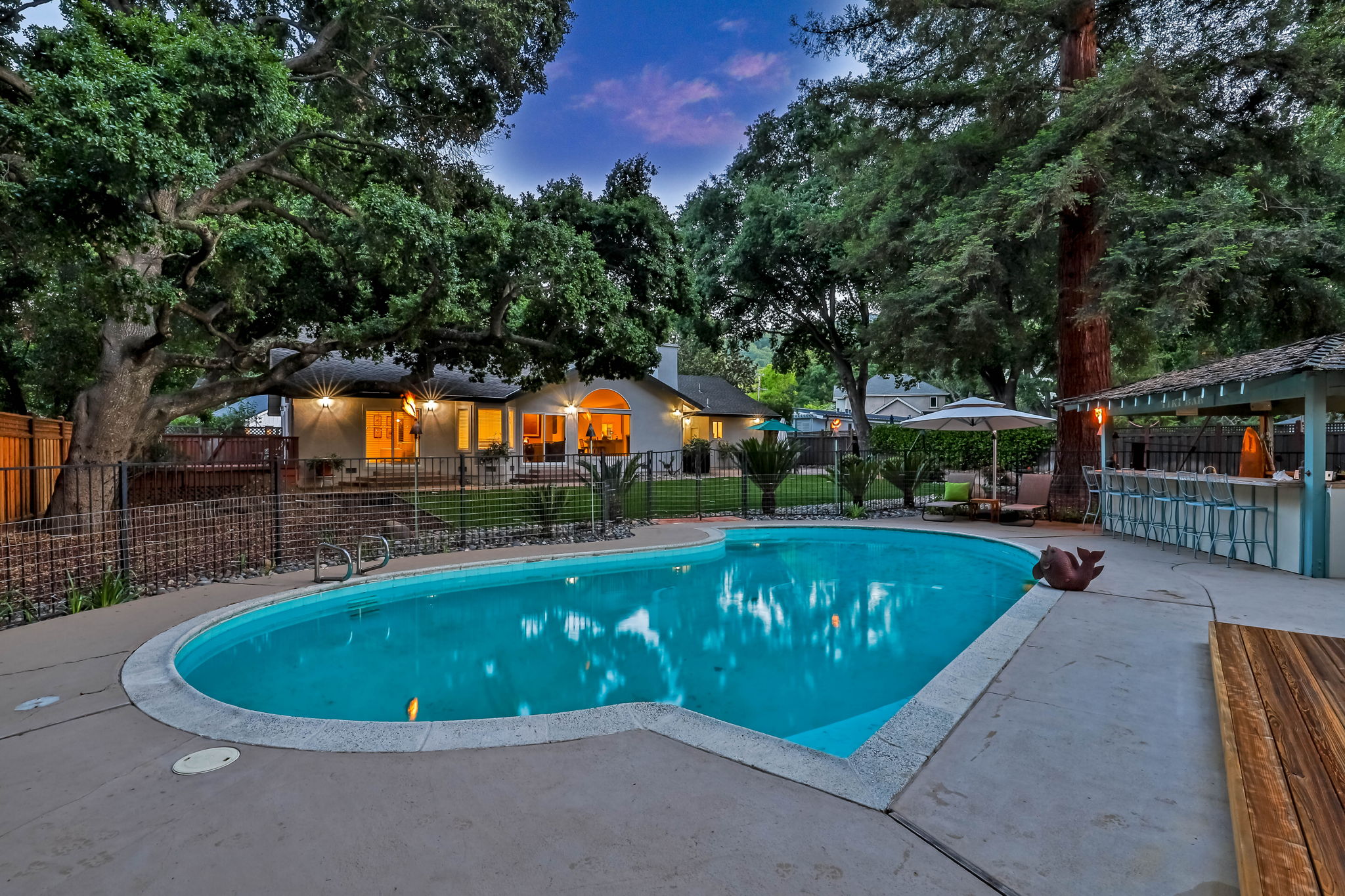 Stunning single-level 4 bed 2.5 bath located in beautiful Westside Alamo surrounded by Heritage Oaks and majestic Redwoods. Boasting views of the park-like backyard from windows in the great room and primary bedroom. The home features a spacious great room, living-dining rooms, wine storage room, and an updated kitchen providing ample space for entertaining guests or relaxing. Primary bathroom with Jacuzzi tub. New bathroom updates include bidet toilets. Step outside into the serene backyard with a pool (fully fenced) and covered cabana and a restaurant-style kitchen, perfect for hosting parties or enjoying a summer barbecue. Surrounded by a garden with raised planter beds, fully irrigated and protected from wildlife. Extra large side yard. Space allows for future expansion. Great location close to schools and trails.